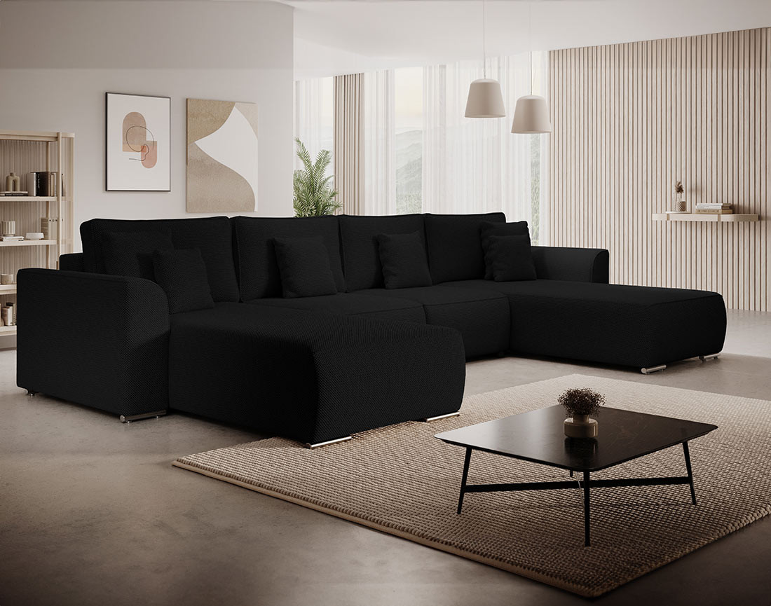 Gabriel - Canapé panoramique en U 7 places convertible avec coffre en tissu texturé