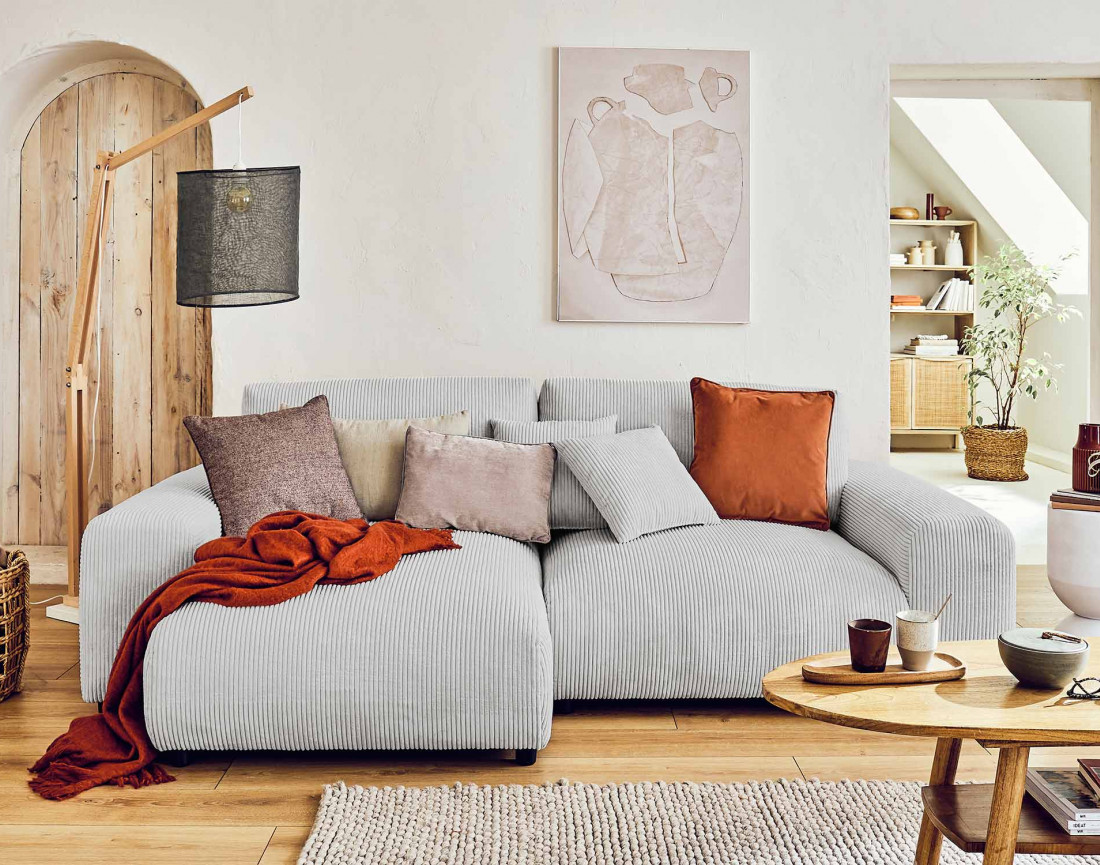 Associez notre Pouf Topaze à votre canapé Garance. Celui-ci a été conçu dans la même matière, en velours côtelé épais, pour s'accorder parfaitement.