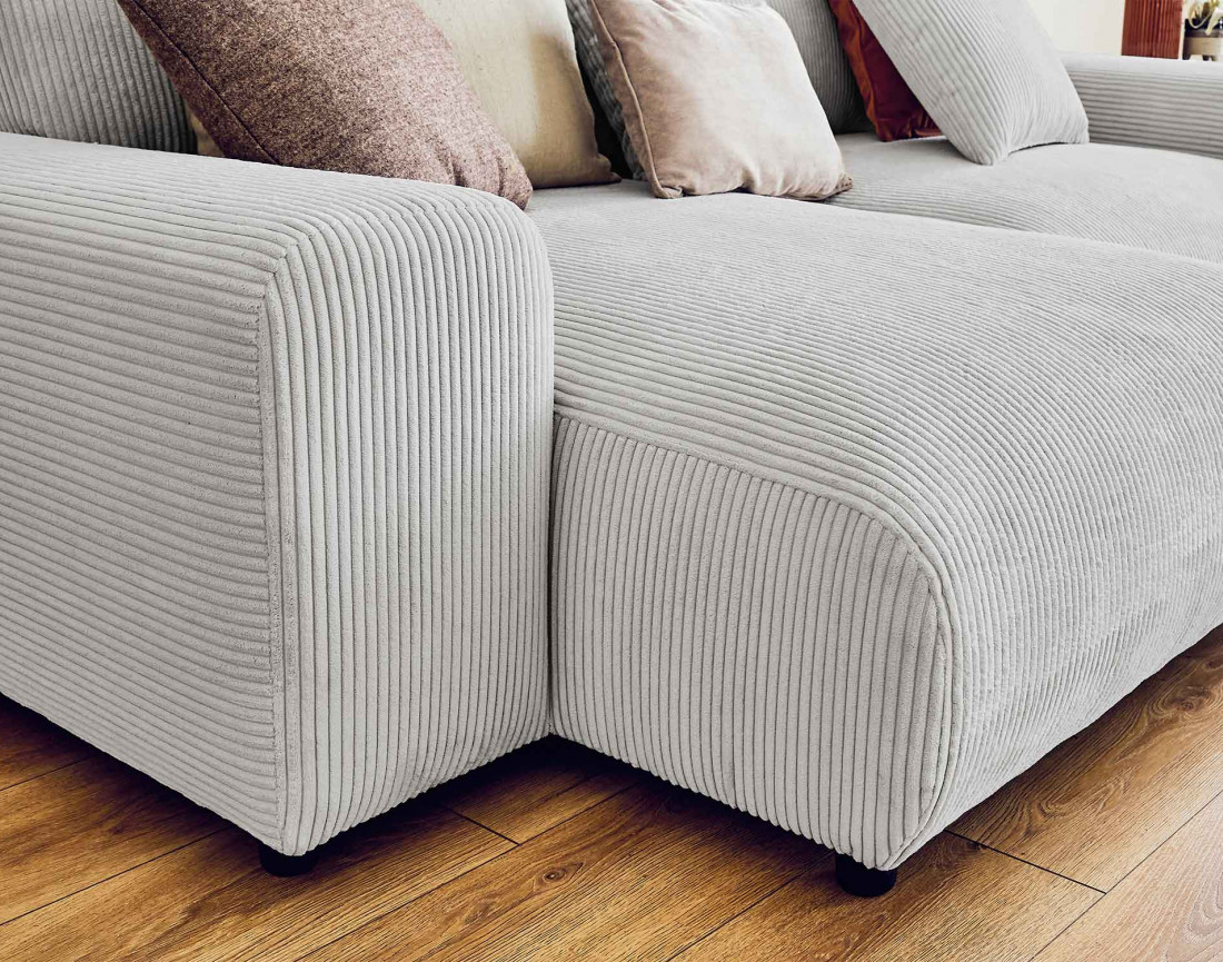 Le canapé d’angle réversible Garance ne donne qu’une envie : s’y plonger ! Il se démarque par des proportions généreuses et une assise rebondie et moelleuse en velours côtelé pouvant accueillir jusqu’à 4 personnes. Vous allez également adorer sa large méridienne, idéale pour une soirée détente.