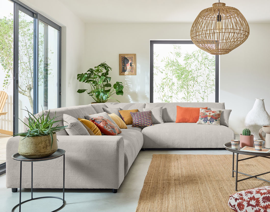 Doté de six places généreuses, ce canapé offre suffisamment d'espace pour accueillir toute la famille ou pour recevoir des invités en toute convivialité. Chaque assise est conçue pour offrir un confort optimal, vous permettant de vous détendre et de vous relaxer en toute tranquillité. Ajoutez-y le pouf Garance pour jouer avec les volumes et pouvoir recevoir encore plus d’invités.