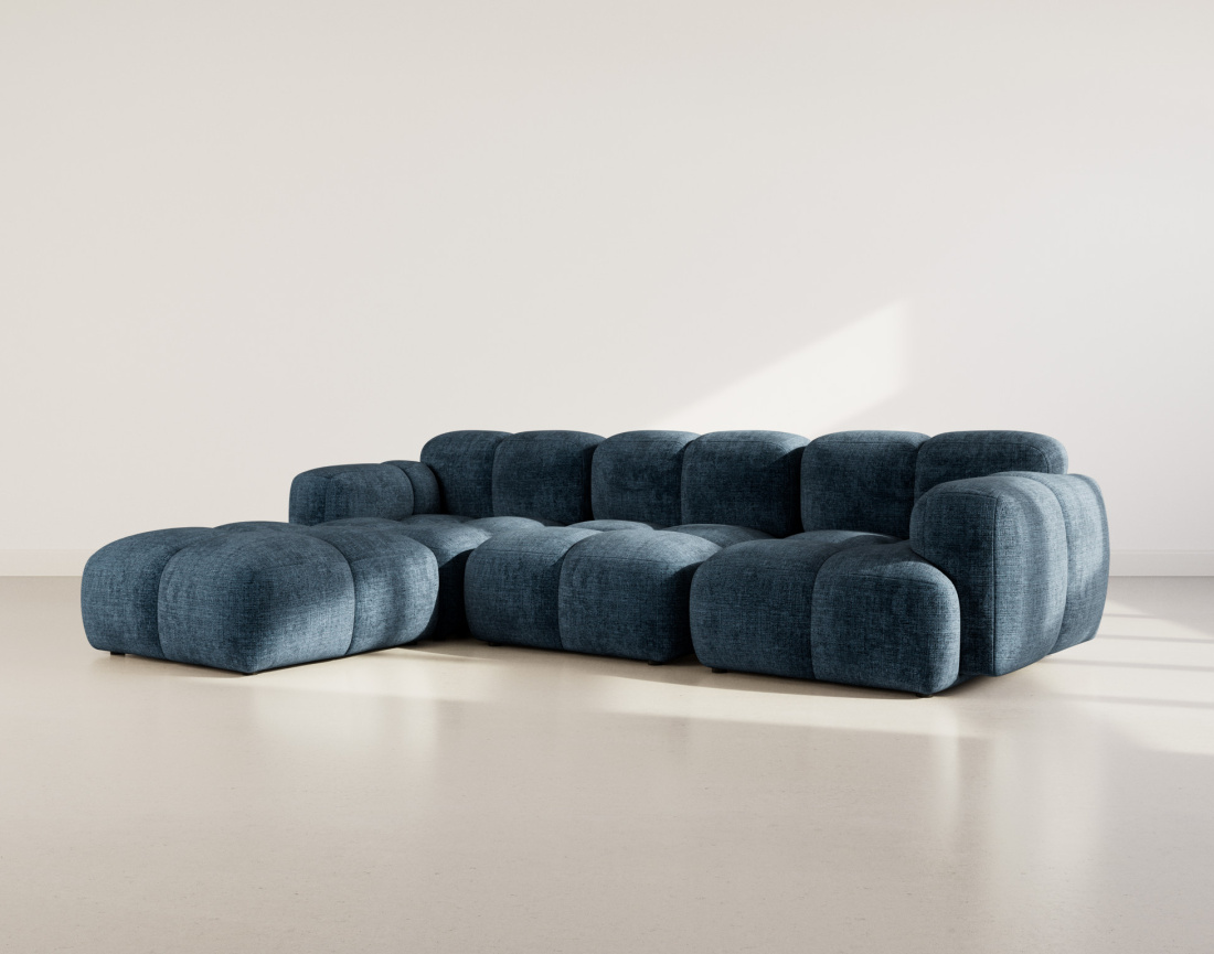 Grace - canapé modulable d'angle réversible 4 places en velours texturé - bleu