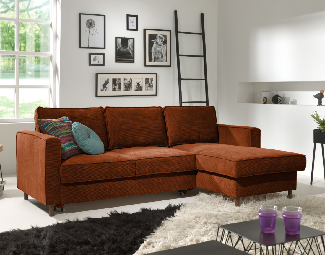 Jake - canapé d'angle droit - convertible avec coffre - 4 places - en velours côtelé