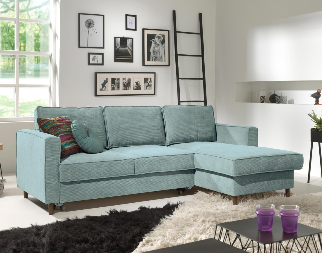 Jake - canapé d'angle droit - convertible avec coffre - 4 places - en velours côtelé - bleu