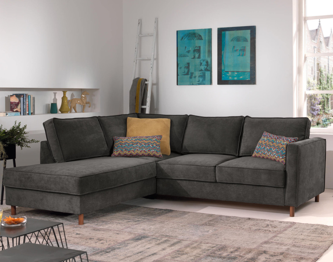 Jake - canapé d'angle gauche - convertible - 5 places - en velours côtelé - gris foncé