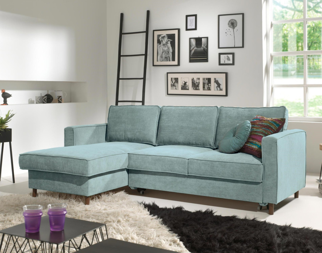 Jake - canapé d'angle gauche - convertible avec coffre - 4 places - en velours côtelé - bleu