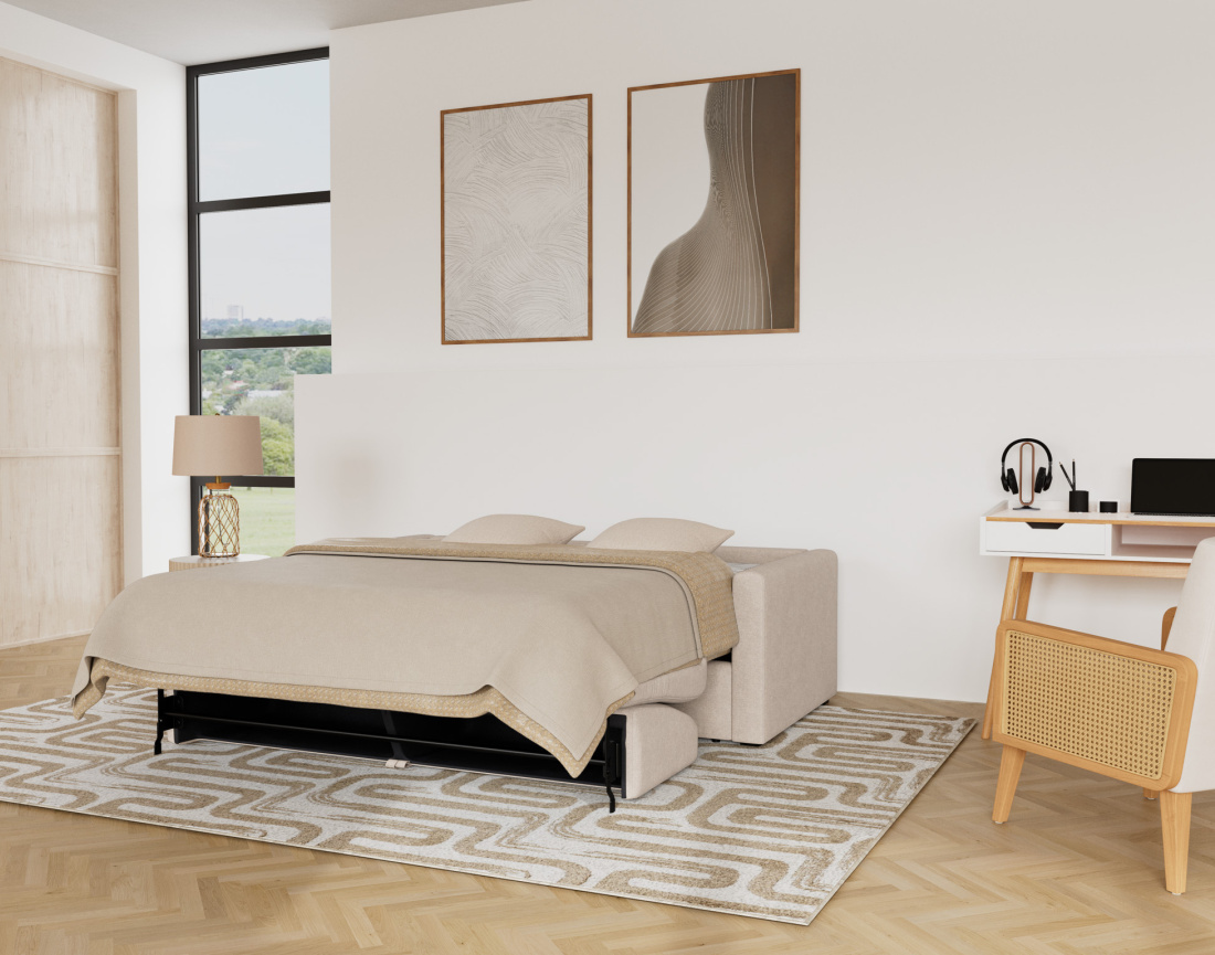 - Avec son mécanisme express et un matelas tout confort inclus, ce canapé convertible se déplie rapidement pour un sommeil aussi reposant qu'un lit, idéal pour un usage quotidien