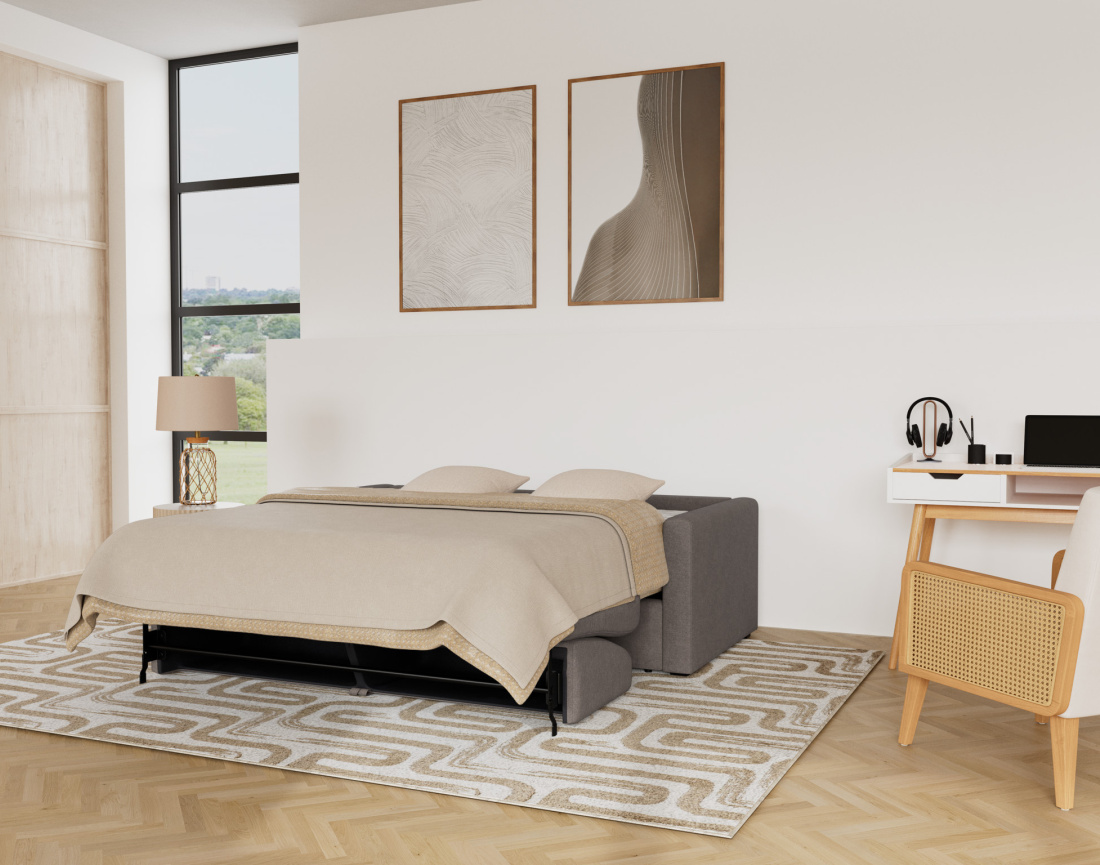 - Avec son mécanisme express et un matelas tout confort inclus, ce canapé convertible se déplie rapidement pour un sommeil aussi reposant qu'un lit, idéal pour un usage quotidien