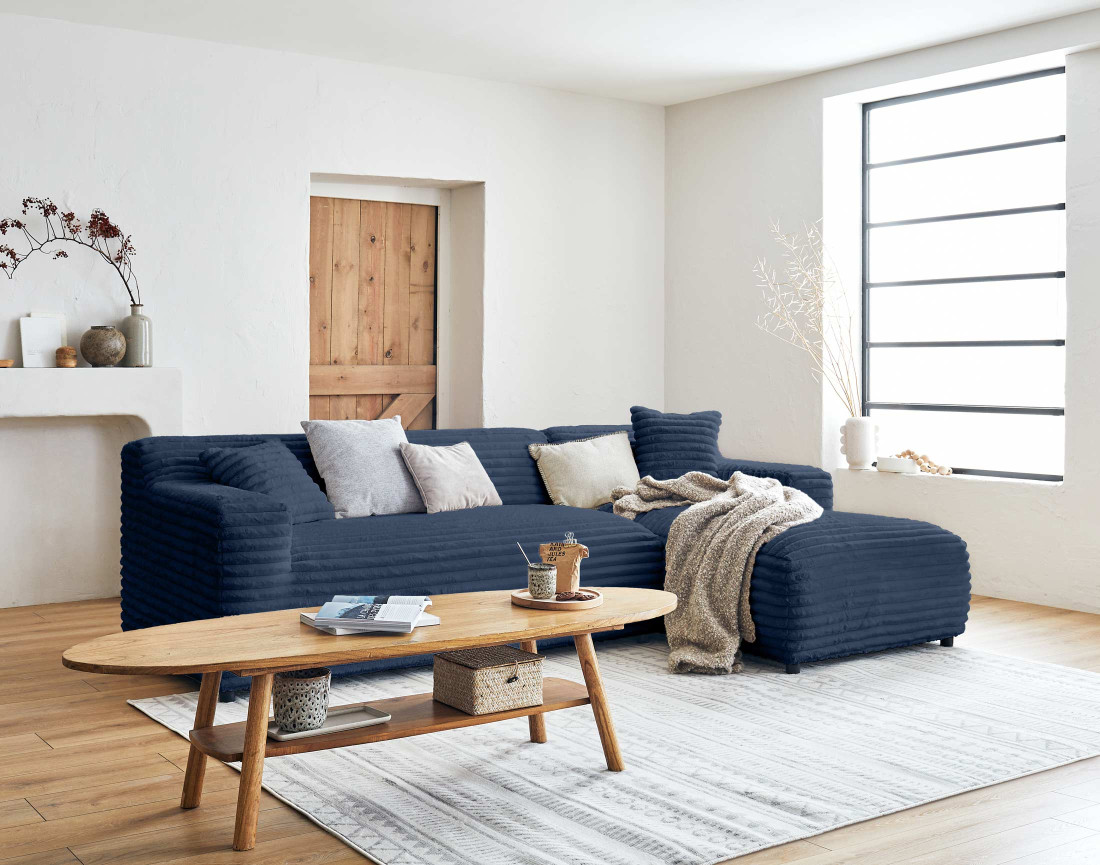 Laponie - canapé d'angle droit - 4 places - en fausse fourrure côtelée
