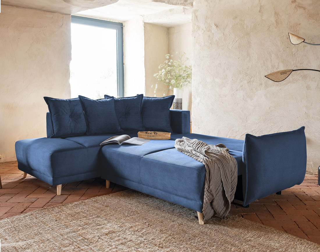 Lena - canapé d'angle gauche 5 places - convertible avec coffre - en velours côtelé