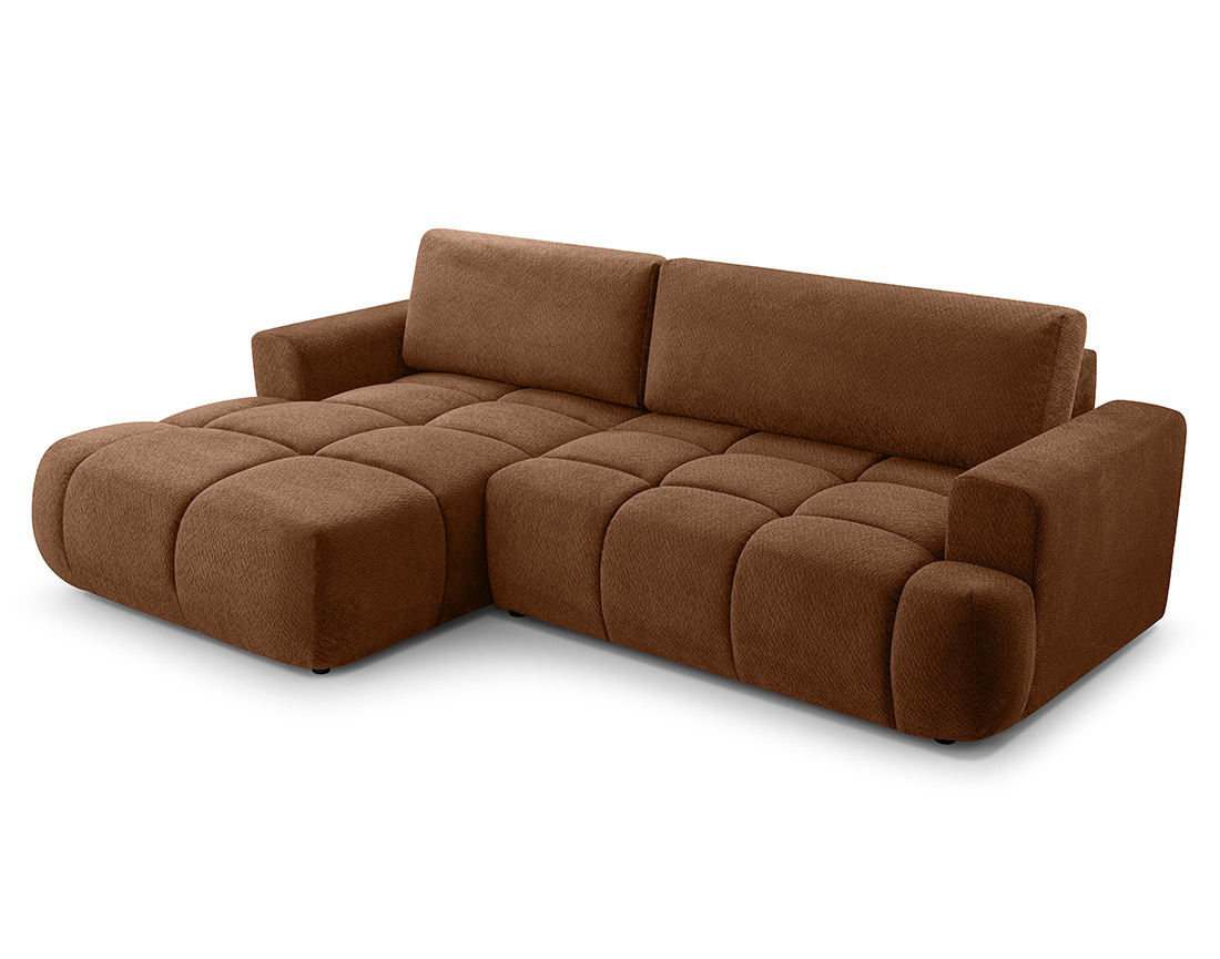 Leonie - Canapé d'angle gauche 4 places convertible avec coffre en velours texturé