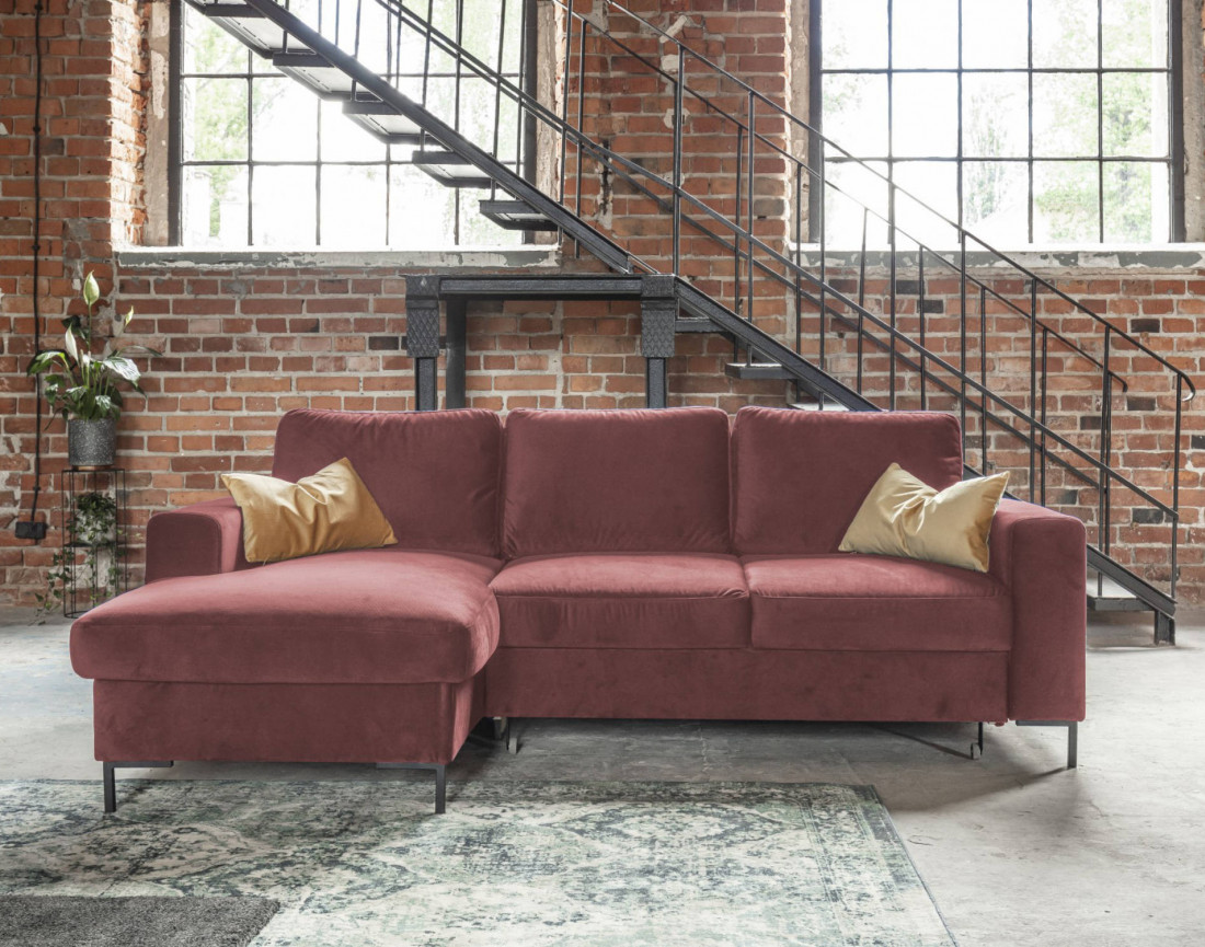 Lilly - Canapé d'angle gauche - 4 places - convertible avec coffre - en velours