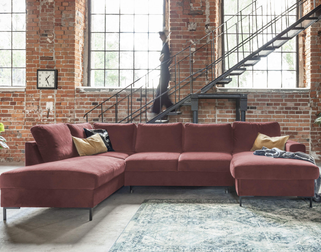 Lilly - Canapé panoramique d'angle gauche - 7 places - convertible avec coffre - en velours