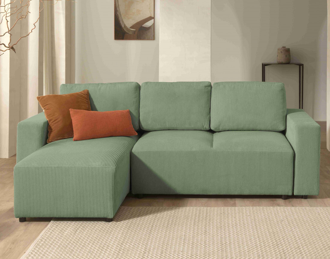 Livy - canapé d'angle convertible et coffre - réversible - en velours côtelé - 4 places