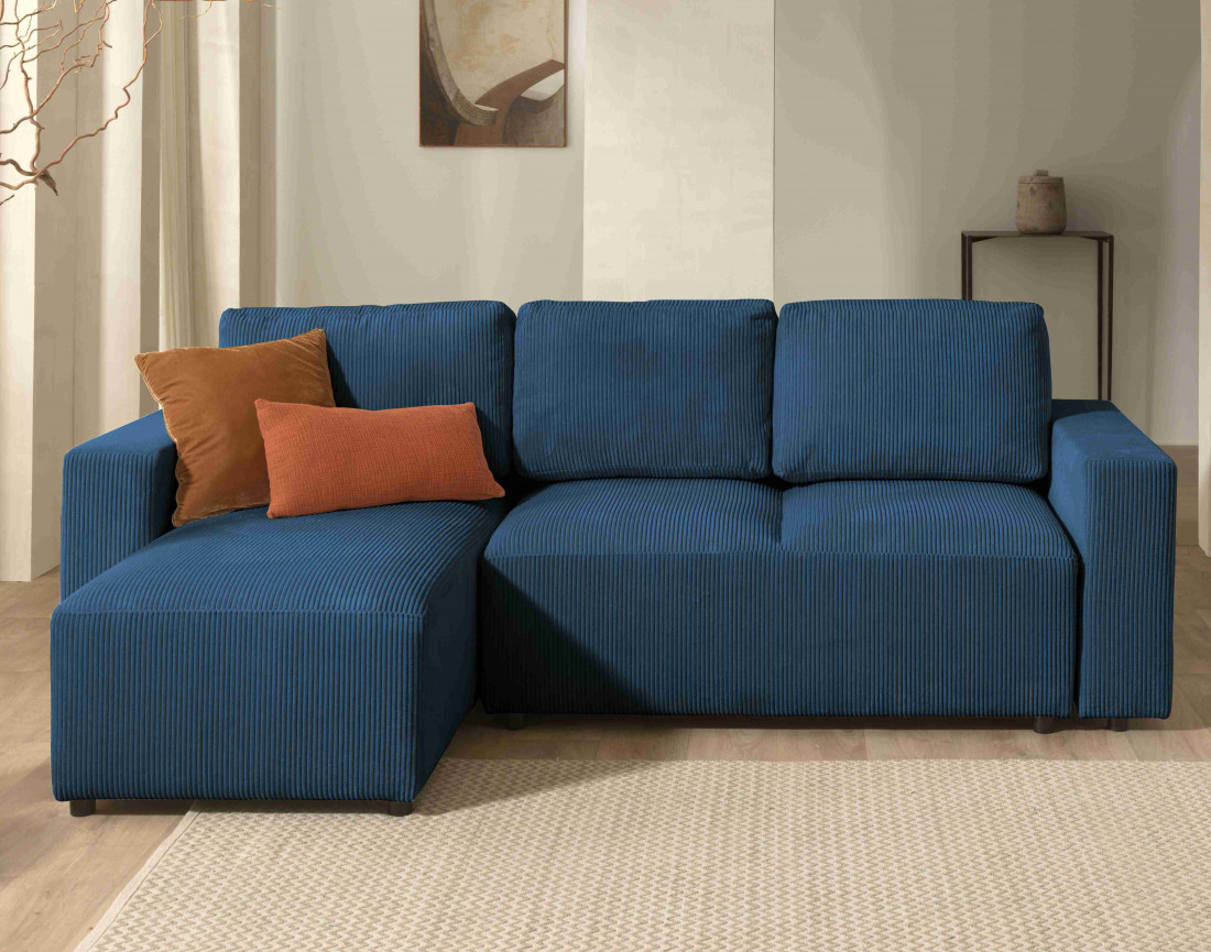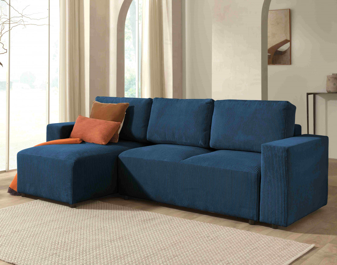 Livy - canapé d'angle convertible et coffre - réversible - en velours côtelé - 4 places