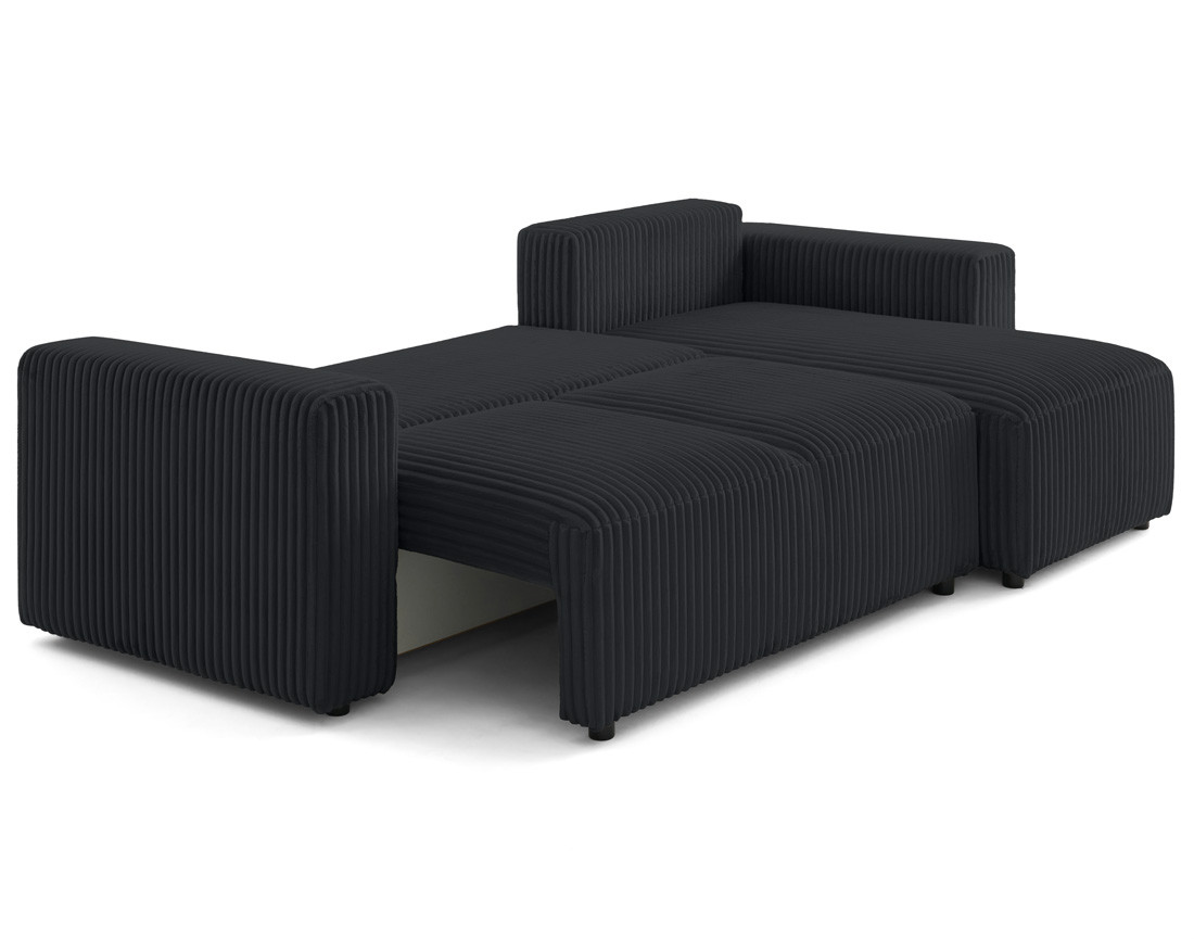 Livy - canapé d'angle réversible 4 places convertible avec coffre en velours côtelé grosses côtes