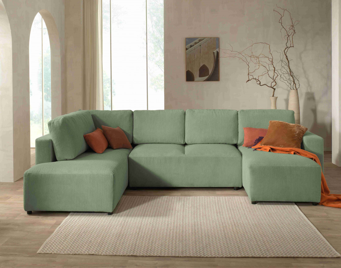 Plus qu’un revêtement en velours côtelé, la gamme Livy est composé d’un coffre de rangement se trouvant sous l’assise qui permet de stocker oreillers, plaids ou autres. Tout en tirant l’assise vers vous et en rabaissant le dossier, un espace de couchage se rend disponible afin d’accueillir vos proches occasionnellement.