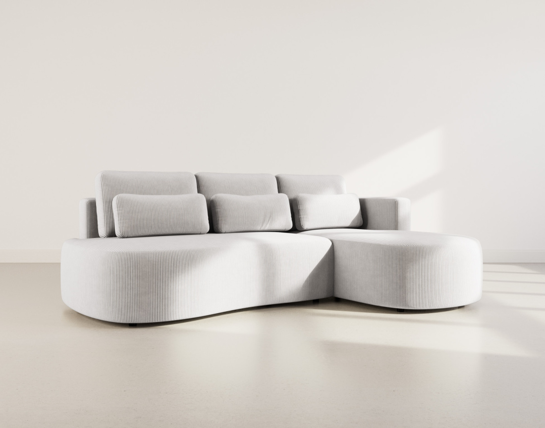 Mahina - canapé d'angle droit 4 places convertible avec coffre en velours côtelé - gris clair