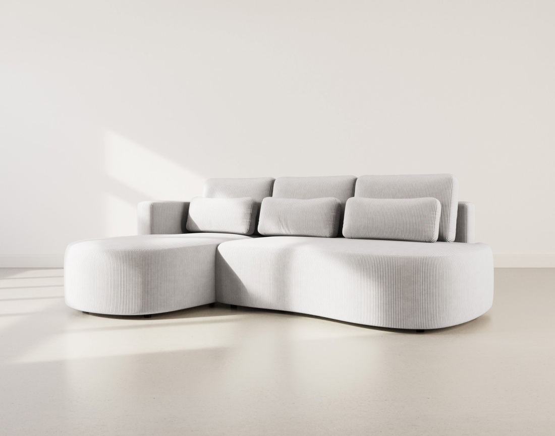 Apportez du style à votre salon avec le canapé d’angle gauche Mahina 4 places, une pièce au design arrondi ultra moderne. Son revêtement en velours côtelé lui donne un look chaleureux et texturé, pile dans la tendance actuelle. Avec sa méridienne galbée et ses lignes douces, il transforme votre intérieur en un espace cosy et élégant. Fabriqué en Europe avec soin, il allie esthétique, qualité et caractère.