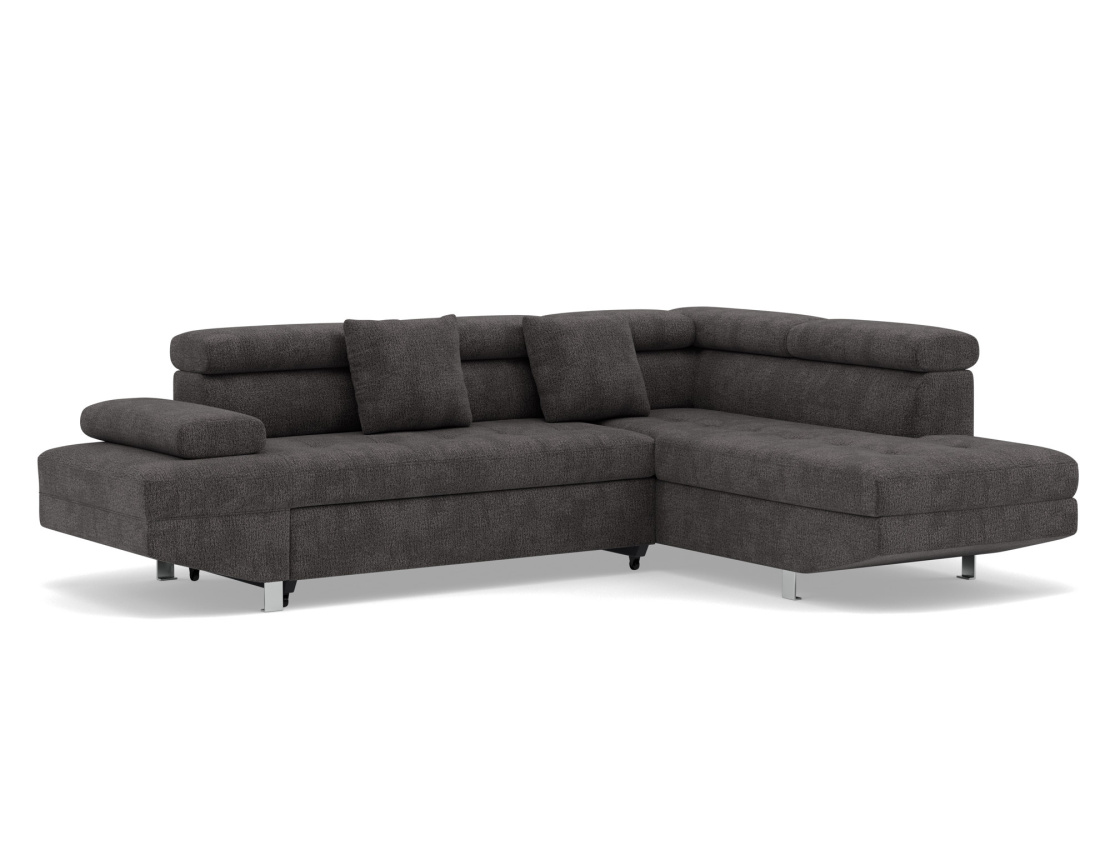 Margaux - Canapé d'angle droit 5 places convertible avec coffre et têtières réglables en velours texturé