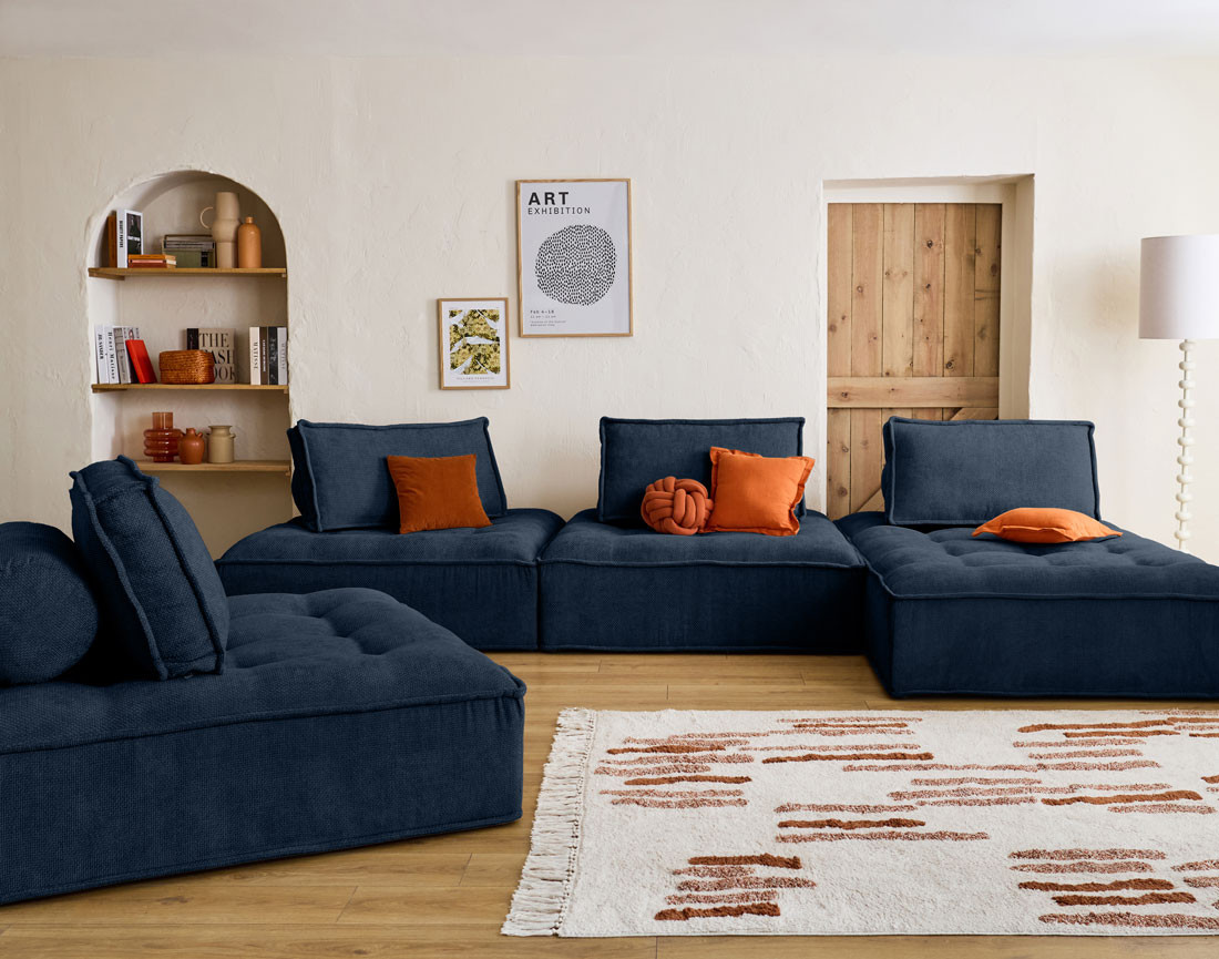Le module d’assise Marisol, de même que le reste de la collection, se décline en plusieurs coloris tendance, à savoir : gris, bleu, beige, terracotta, jaune et vert. Autre avantage indéniable : la chauffeuse est modulable et peut s'assembler avec d’autres modules de la collection, que ce soit le pouf ou la méridienne. Vous pouvez ainsi l'utiliser seule ou la combiner pour créer un canapé d'angle droit ou d'angle gauche, et même un canapé panoramique 6, 7 et même 8 places selon vos envies. Vous pourrez ainsi transformer votre espace de vie en un lieu à la fois chic et confortable. Avec Marisol, composez le salon de vos rêves et déclinez ses coloris selon vos envies en version monochrome ou en version patchwork.