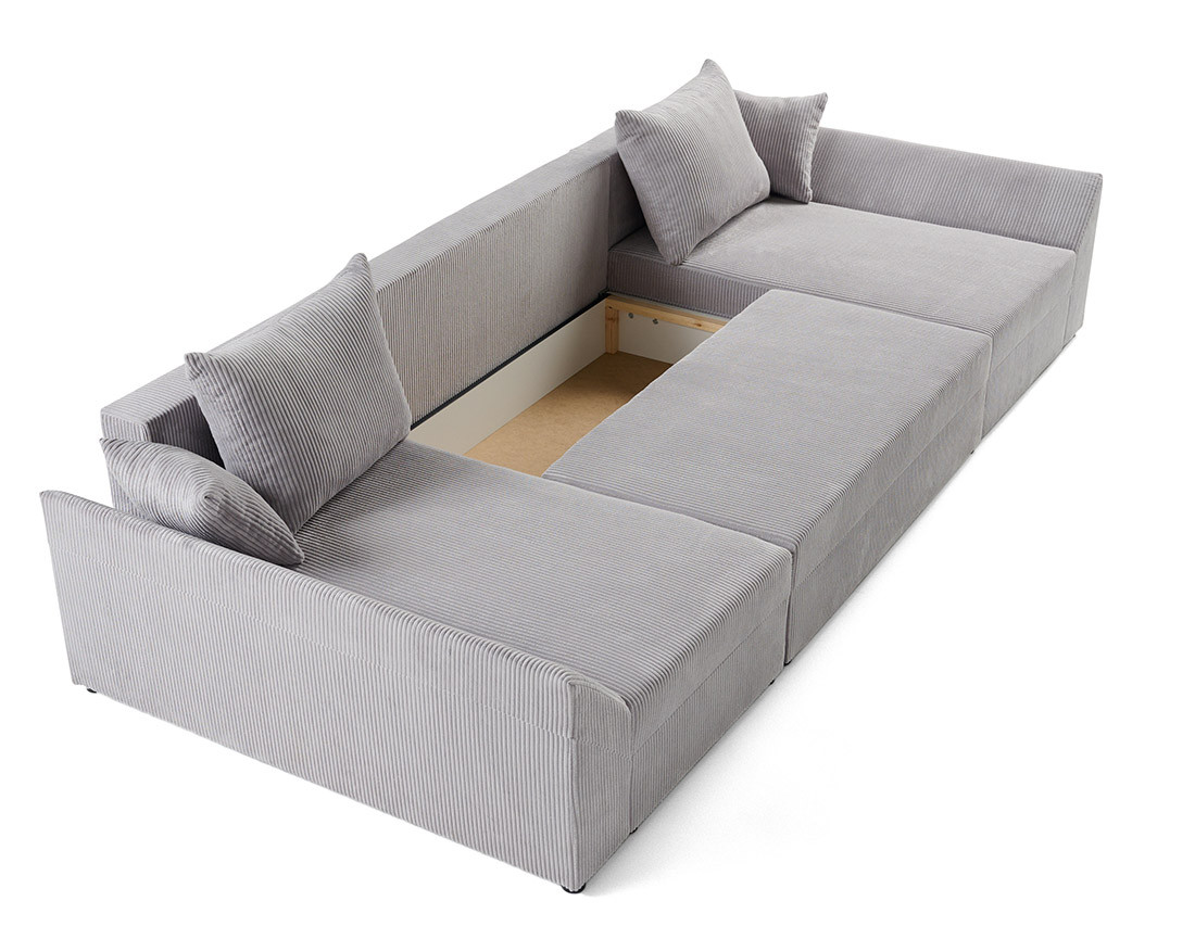 Mike - canapé panoramique en U - 7 places - convertible avec coffre - en velours côtelé