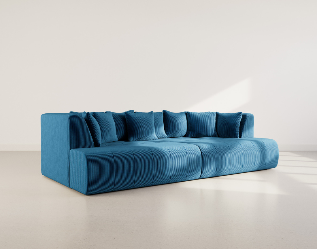 Onyx - canapé droit 4 places avec double méridienne - assise profonde - en velours côtelé - bleu