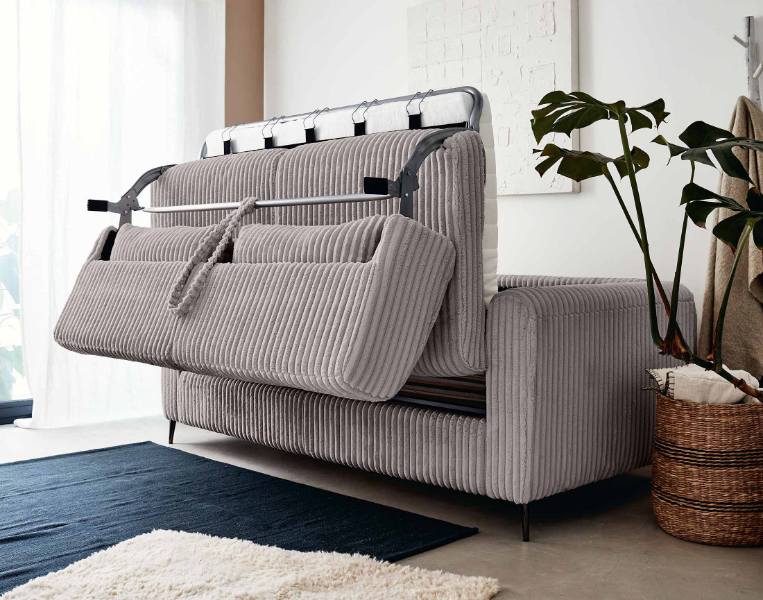Le canapé lit Owen est équipé d’un sommier métallique avec mécanisme à ouverture express qui permet de déplier et replier le lit très facilement sans enlever les coussins d’assise et de dossier. Côté confort, l’assise est composée d’une mousse polyuréthane de 25kg/m3 tout comme les deux coussins de dossier de 80x50 cm et épais de 12 cm. La nuit, en position lit, il peut accueillir deux personnes grâce à ses dimensions standards de 140x190 cm et vous garantir un sommeil confortable et agréable comme dans un lit normal.