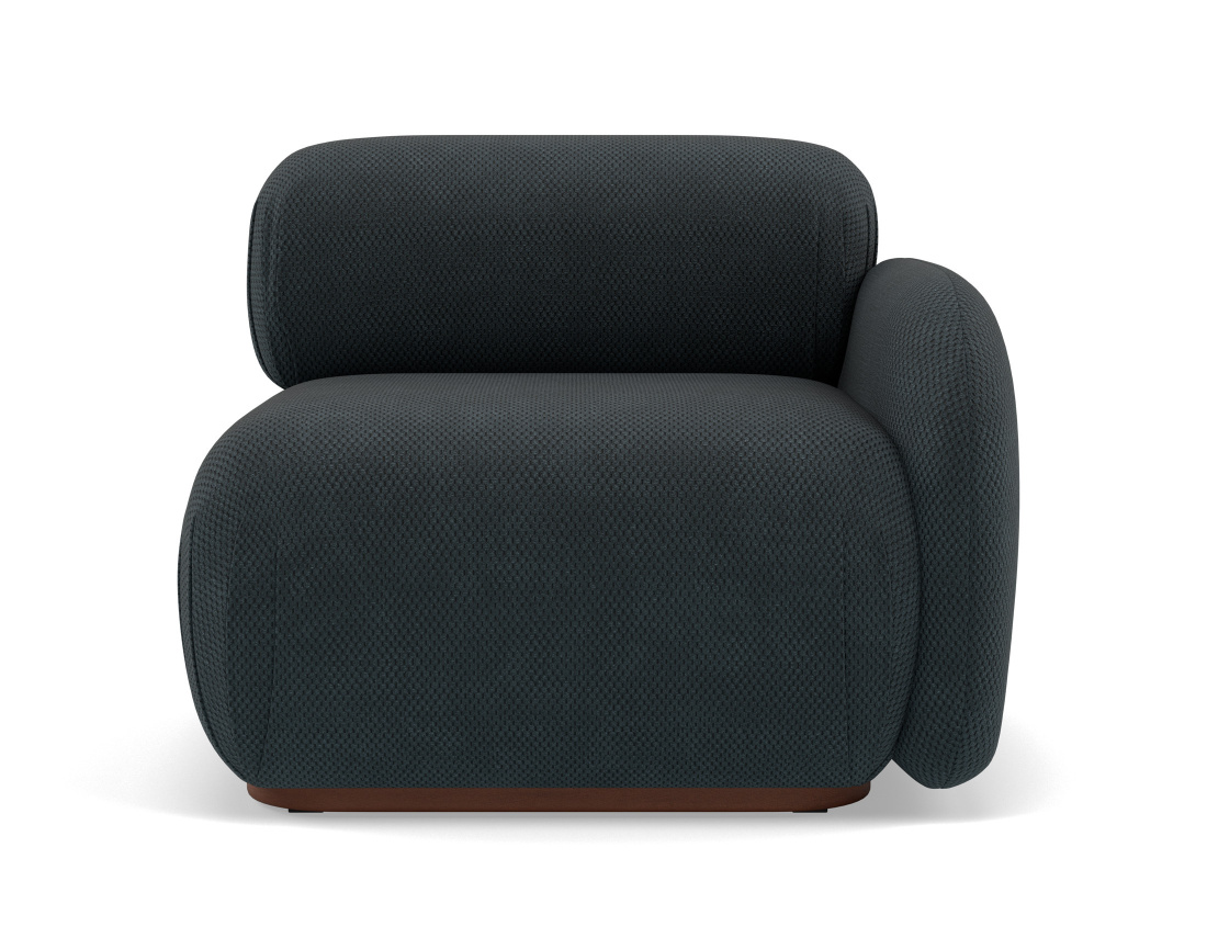 Habillé d’un velours texturé doux au toucher, ce module mise sur le confort sans négliger l’esthétique. Son accoudoir intégré apporte maintien et équilibre visuel, tandis que ses pieds en bois foncé affirment un style chic et intemporel. Idéal pour les intérieurs raffinés, Penelope marie modularité et allure avec une simplicité élégante.