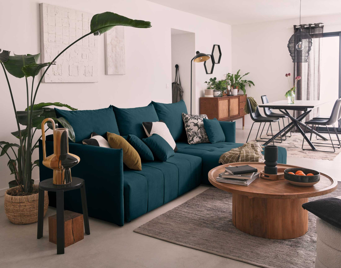 Le saviez-vous ? Notre canapé Petra est fabriqué à la main en Europe et a été conçu pour allier style et praticité ? Vous pourrez profiter de sa fonction convertible pour des moments de détente ultra-confortables ! Encore mieux, il dispose d'un coffre de rangement sous son assise pour y stocker tes coussins et plaids préférés. Petra, c’est le canapé idéal pour un chez-soi cosy et pratique !