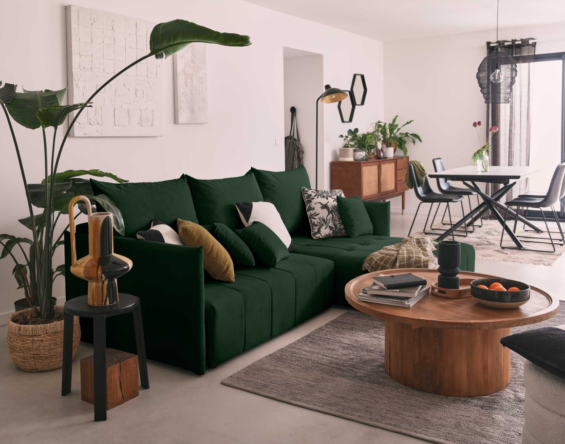 Le saviez-vous ? Notre canapé Petra est fabriqué à la main en Europe et a été conçu pour allier style et praticité ? Vous pourrez profiter de sa fonction convertible pour des moments de détente ultra-confortables ! Encore mieux, il dispose d'un coffre de rangement sous son assise pour y stocker tes coussins et plaids préférés. Petra, c’est le canapé idéal pour un chez-soi cosy et pratique !