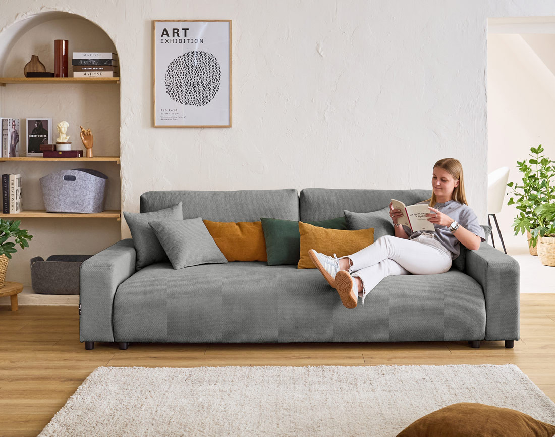 Son design se marie harmonieusement avec ses fonctionnalités très pratiques. Équipé d'une fonction convertible, il vous offre un couchage occasionnel pour deux personnes de 140x190 cm créant ainsi l'espace idéal pour vous prélasser ou pour accueillir vos invités. Ce couchage renferme par ailleurs un coffre de rangement, idéal pour y ranger plaids et oreillers !