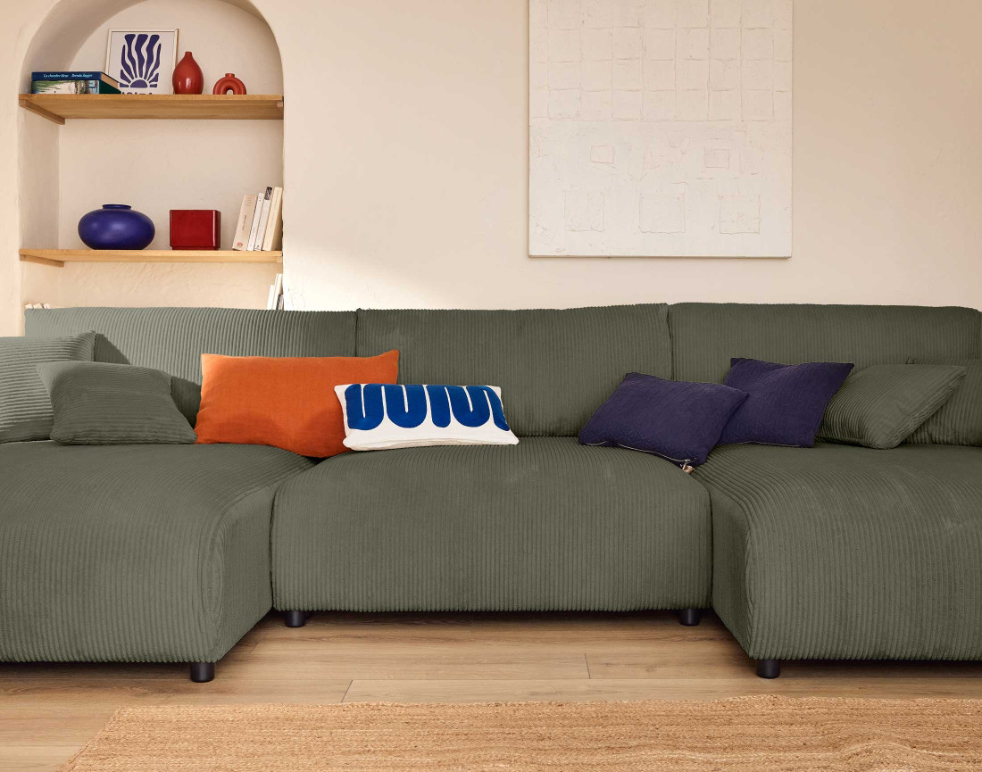Envie d’une ambiance cocooning pour votre salon ? Laissez-vous séduire par le canapé panoramique en U Pivoine ! Ses dimensions généreuses peuvent accueillir jusqu’à 7 personnes, ce qui le rend parfait pour des moments de détente ou pour recevoir vos invités. Vous allez apprécier la douceur et le confort de son revêtement en velours côtelé qui apportera de la chaleur à votre salon.