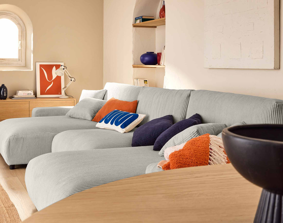 Comme tous les canapés en velours côtelé, Pivoine n’aime pas l’eau. Aspirez régulièrement avec un embout adapté. Nettoyer les salissures légères avec un chiffon humide. Pour les taches tenaces, nous vous recommandons de choisir des produits adaptés selon le textile, et de faire un test sur une petite partie non visible.