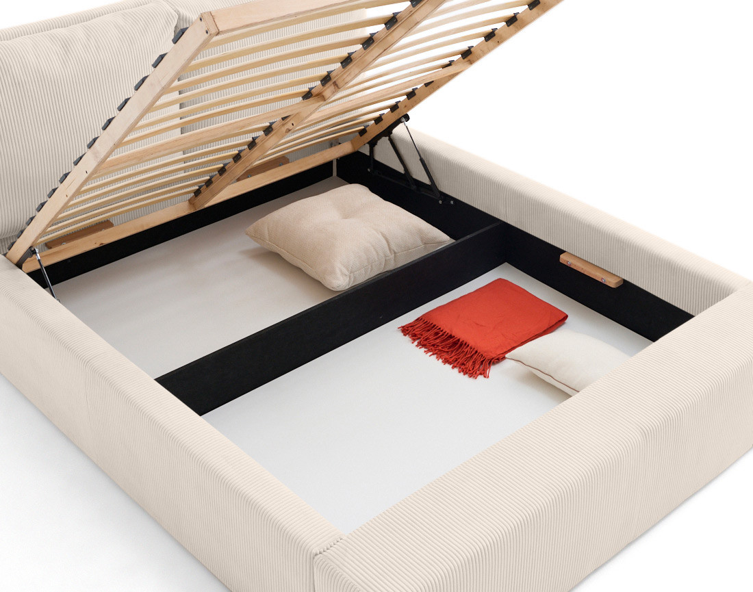 Lit Coffre Pivoine 160x200 : velours côtelé et tête de lit confortable