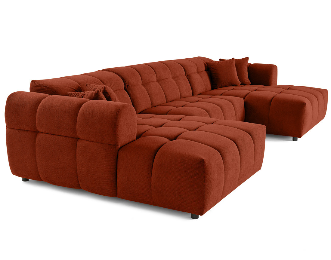 Le Ray - canapé panoramique en U 7 places en tissu texturé est l’incarnation du confort et du style. Sa assise généreusement rebondie est spécialement conçue pour offrir un confort optimal et durable, vous permettant de profiter de moments de détente prolongés. L’assise bombée, douce comme un nuage, vous enveloppe agréablement, apportant une sensation de légèreté à chaque utilisation. Le dossier incurvé, quant à lui, assure un soutien parfait et une posture idéale, transformant votre salon en un véritable espace de relaxation.