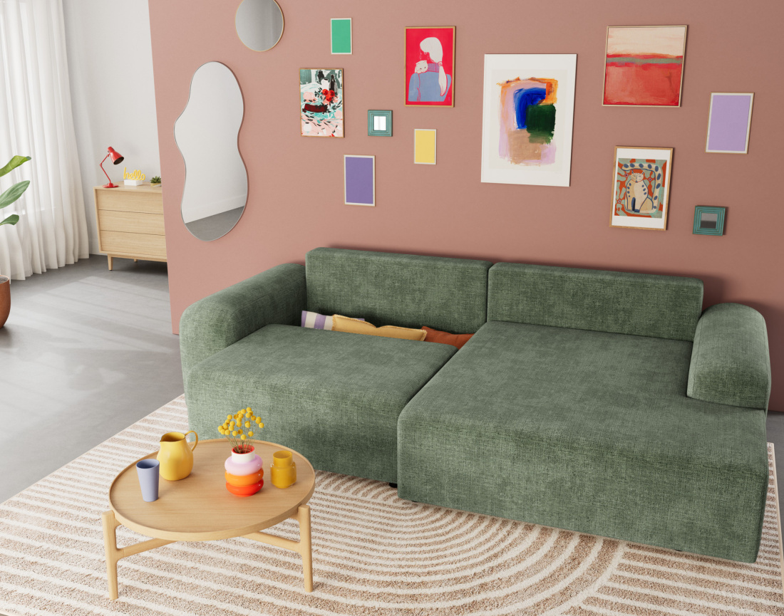 Rebecca ne mise pas uniquement sur le style : il cache aussi des atouts pratiques redoutables. Grâce à sa fonction convertible, il se transforme en un couchage d’appoint confortable en un geste. Idéal pour accueillir famille ou amis à l’improviste. Autre point fort : son coffre intégré sous l'assise principale, parfait pour ranger couvertures, oreillers ou tout ce que vous souhaitez garder à portée de main sans encombrer votre espace. Fabriqué en Europe, ce canapé allie design, praticité et qualité, pour un intérieur aussi beau que fonctionnel.