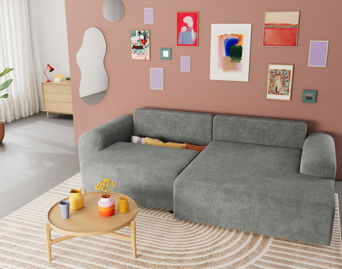 Rebecca ne mise pas uniquement sur le style : il cache aussi des atouts pratiques redoutables. Grâce à sa fonction convertible, il se transforme en un couchage d’appoint confortable en un geste. Idéal pour accueillir famille ou amis à l’improviste. Autre point fort : son coffre intégré sous l'assise principale, parfait pour ranger couvertures, oreillers ou tout ce que vous souhaitez garder à portée de main sans encombrer votre espace. Fabriqué en Europe, ce canapé allie design, praticité et qualité, pour un intérieur aussi beau que fonctionnel.