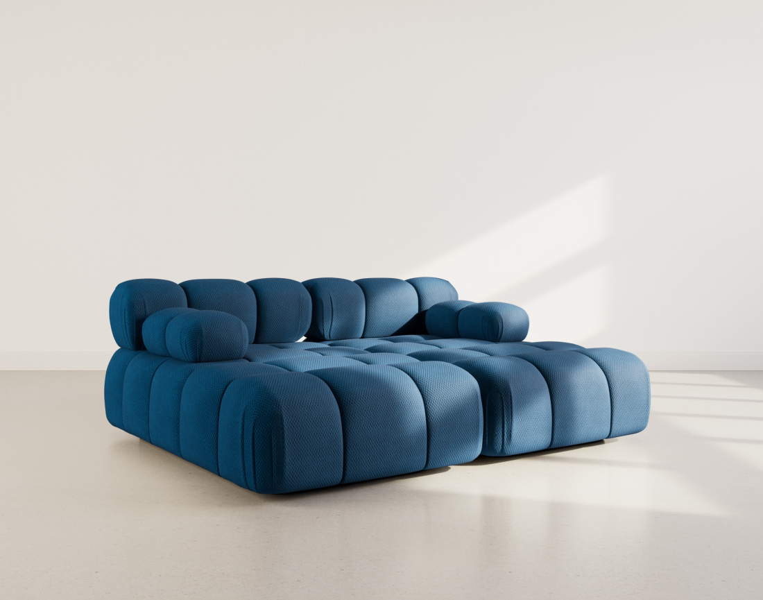 Ruby - canapé droit 4 places avec double méridienne - assise profonde - en velours texturé - bleu