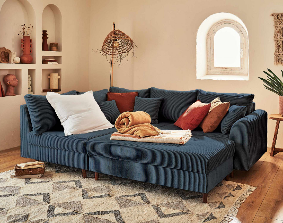 Fabriqué à la main en Europe, cet ensemble d’assises est à la fois tendance et pratique. Le pouf Rune vous permettra d’ajouter une assise supplémentaire à votre salon. Vous pouvez également l’utiliser comme table d’appoint, comme repose-pieds ou encore comme un couchage d’appoint. En effet, en accolant le pouf face à l’assise principale du canapé, vous aurez une surface de couchage de 148x170 cm !
