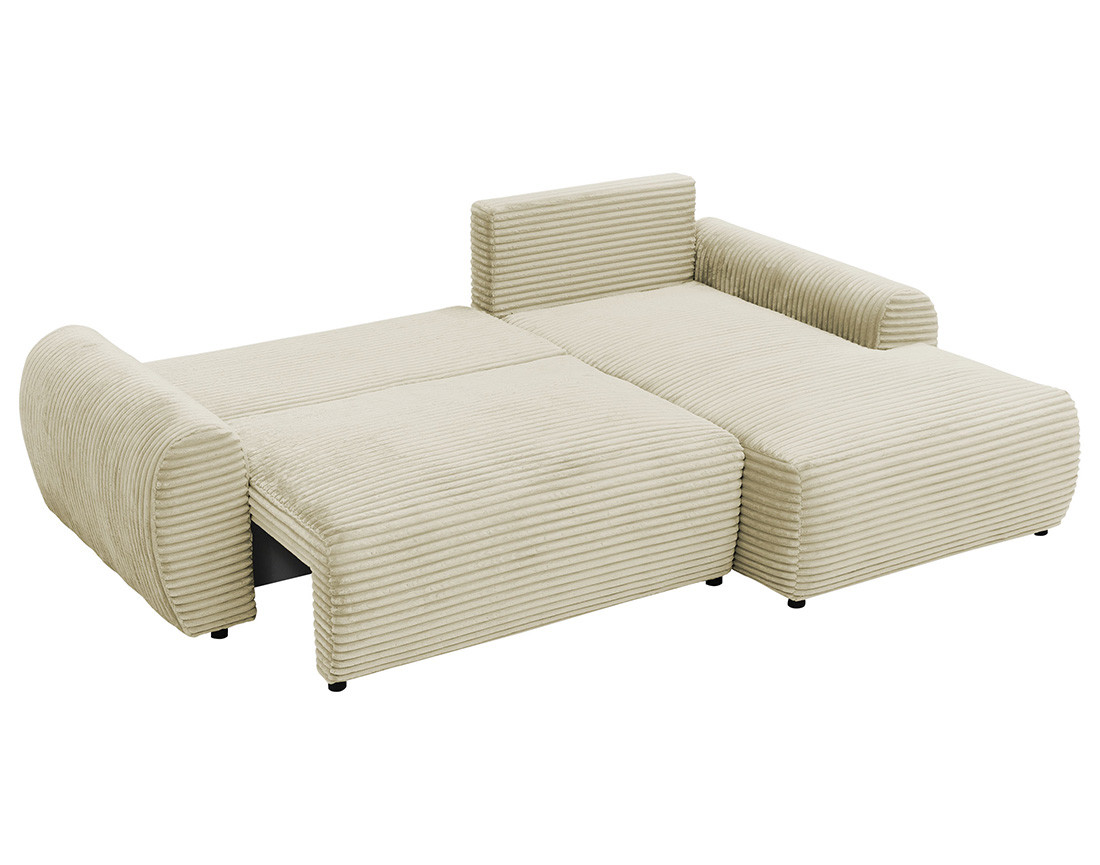 • Canapé d'angle droit 4 places convertible avec coffre en velours côtelé grosses côtes Silvano