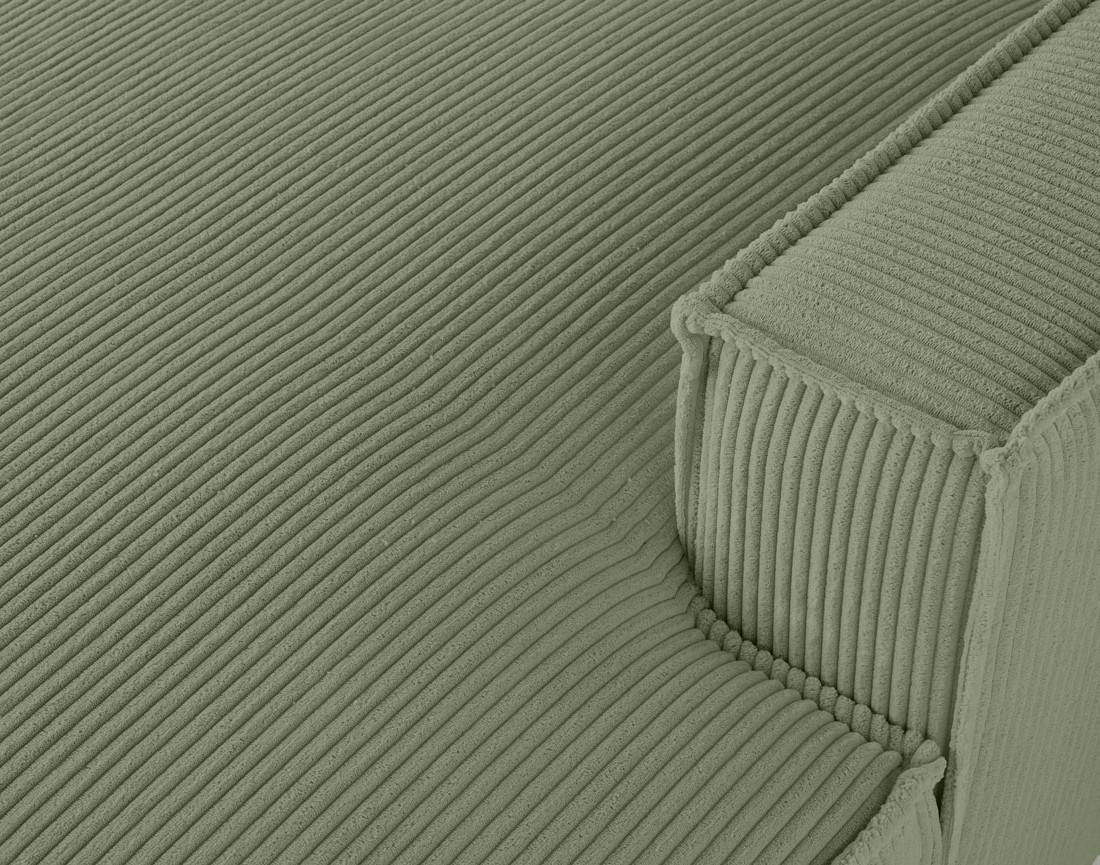 - Assise et dossier : Mousse polyuréthane haute résilience 30kg/m3 – Ressorts ondulés – Structure : Bois massif et panneaux de particules - Revêtement en velours côtelé 100% polyester - Pieds en plastique