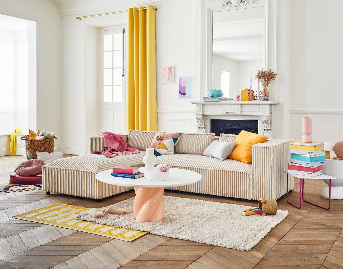 Disponible en plusieurs coloris ainsi qu’en velours côtelé plus fin, le canapé d’angle Stella est votre futur allié déco & détente pour passer des moments cocooning.