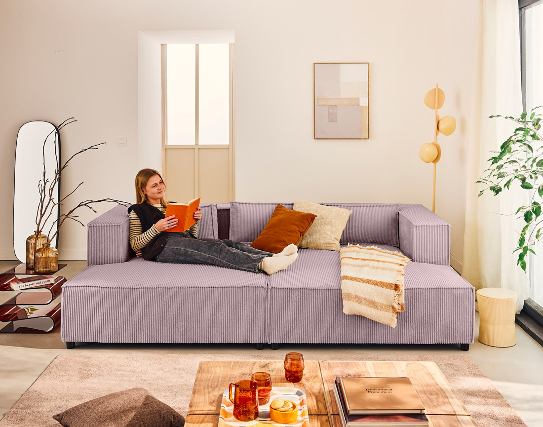 Le Stella ne serait pas le même sans son revêtement en velours côtelé. Subtil mélange de douceur et de caractère, il offre une texture qui capte la lumière et attire les regards. Au toucher, c’est un véritable coup de cœur : chaque fibre semble chuchoter luxe et réconfort. Mais ce n’est pas juste une question de style : son assise profonde et ses matériaux de qualité assurent un confort durable, jour après jour. Que ce soit pour lire un livre ou se lover dans un plaid devant la nouvelle série du moment, vous y passerez des moments toujours agréables.