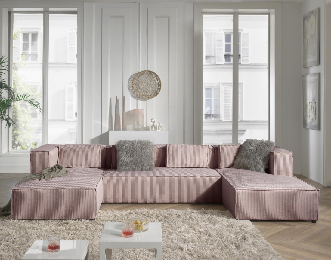 Stella - canapé panoramique en U - 7 places - en velours côtelé