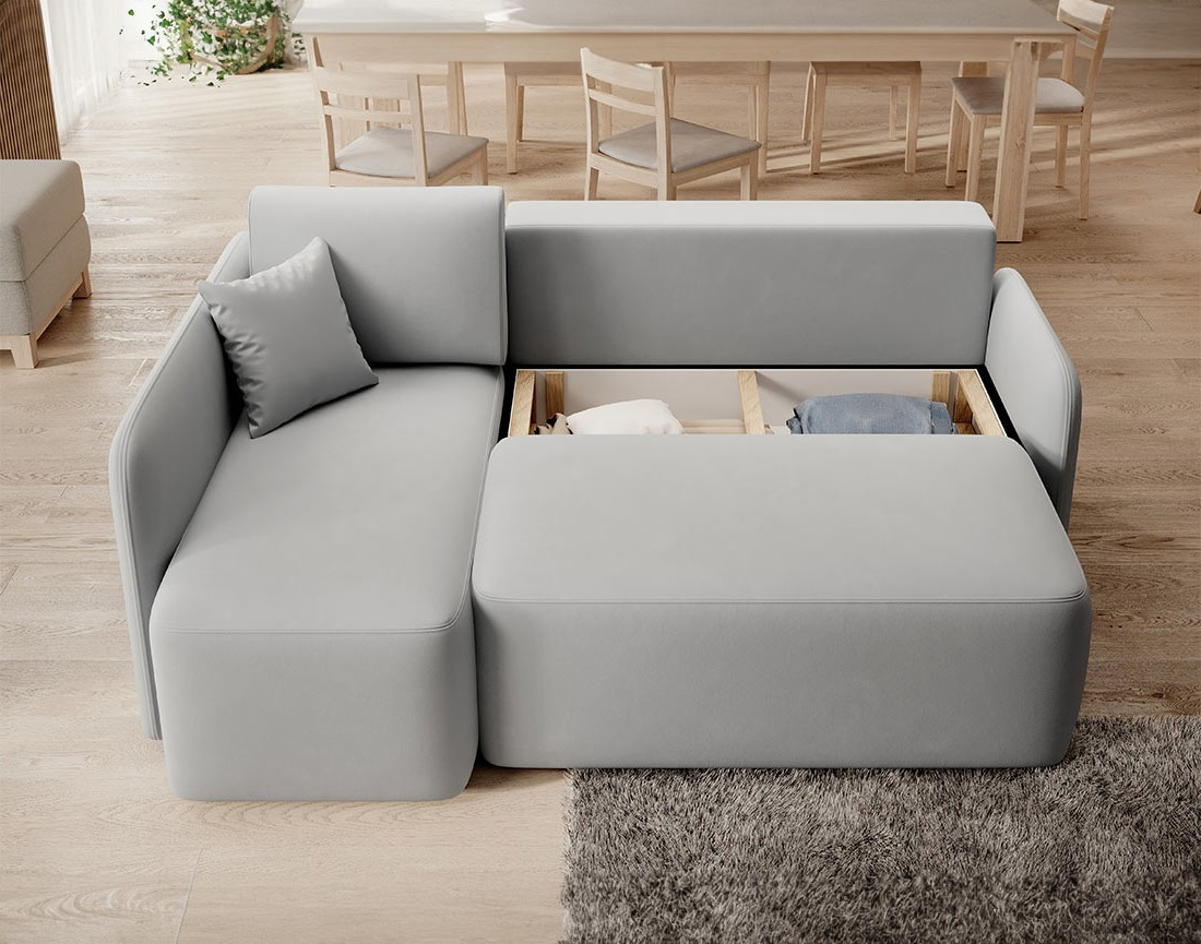 Suzie - canapé d'angle gauche 4 places convertible avec coffre en velours