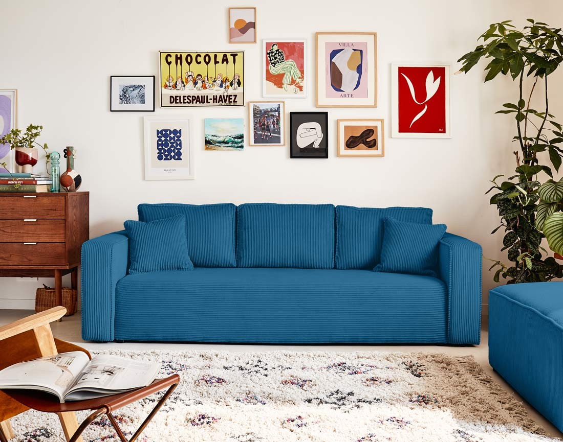 Topaze : Le canapé droit 3 places en velours côtelé de rêve des adeptes de décoration intérieure