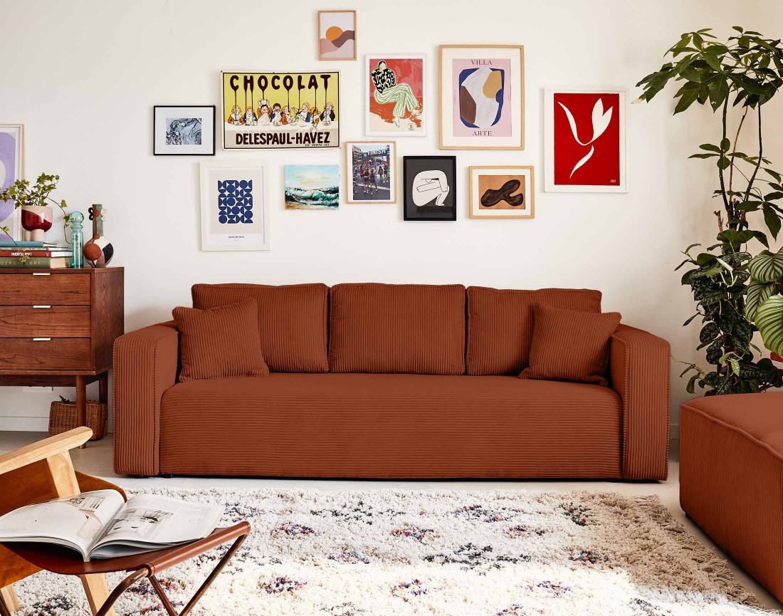 Topaze : Le canapé droit 3 places en velours côtelé de rêve des adeptes de décoration intérieure