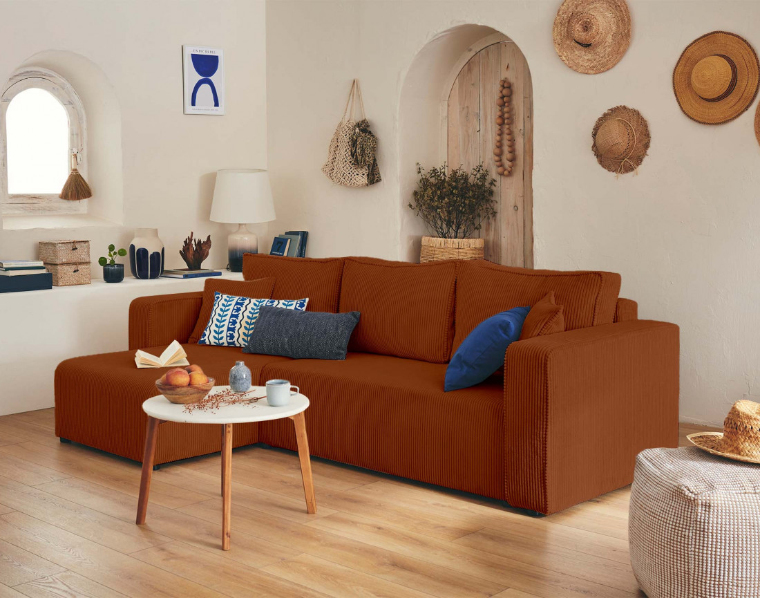 Topaze : Le canapé d'angle en velours côtelé de rêve des adeptes de décoration intérieure