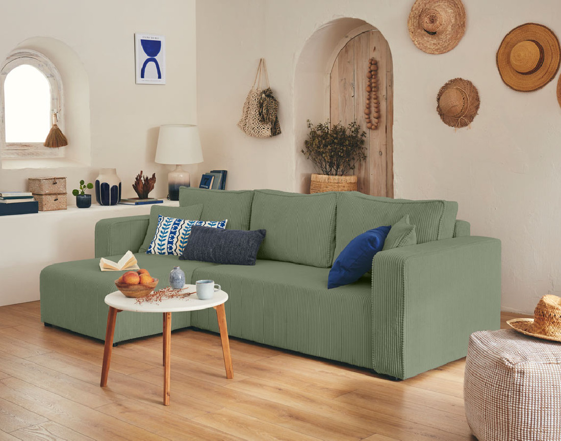 Topaze : Le canapé d'angle en velours côtelé de rêve des adeptes de décoration intérieure