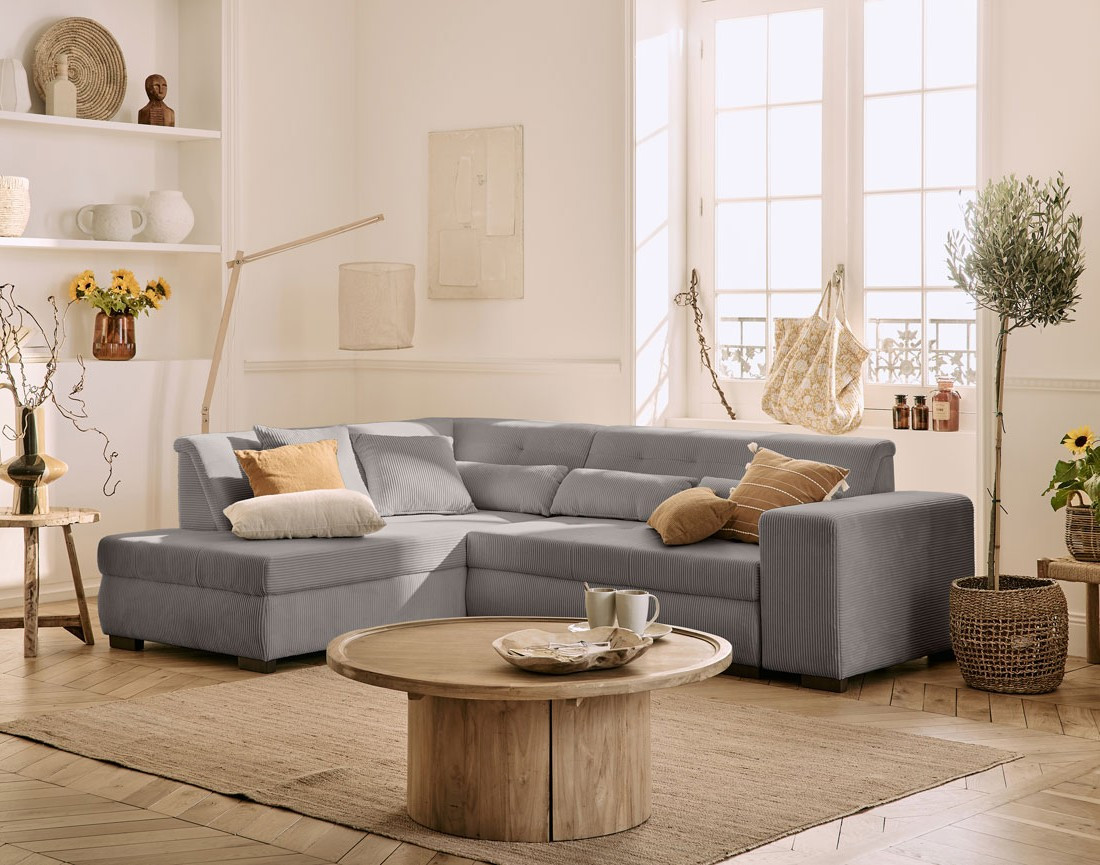 Vermont - canapé d'angle gauche - 5 places - convertible - en velours côtelé